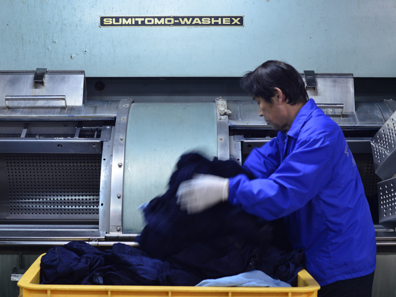 そんな中で5年ほど前から製品染めに力を入れ始めました。余剰在庫を避ける流れもあり、コンセプトとして製品染めで作りたいというブランドさんもあります。製品染めには独特のアタリ感やこなれた感じがあるので、その雰囲気がいいとも言われます。