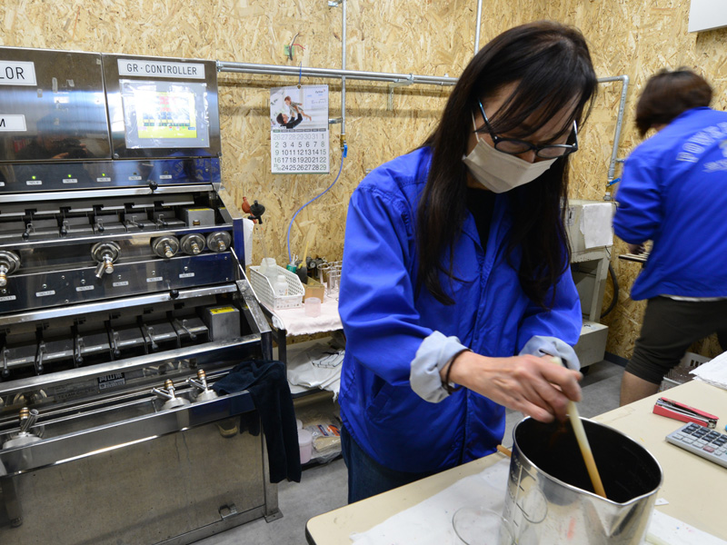 倉敷市児島といえばジーンズで有名ですが、江戸時代には綿が栽培されていて、藍染から始まった綿の染色も盛んに行われていました。特に学生服など濃色の染を専門にする工場が多かったそうです。「うちの会社の前身も黒染めを得意とする染色工場だったんですよ」岡山県立倉敷工業高校の繊維課を卒業後、入社し2011年に会社を引き継いだ生粋の職人上り、ニッセンファクトリー株式会社の難波社長にお話を伺いました。