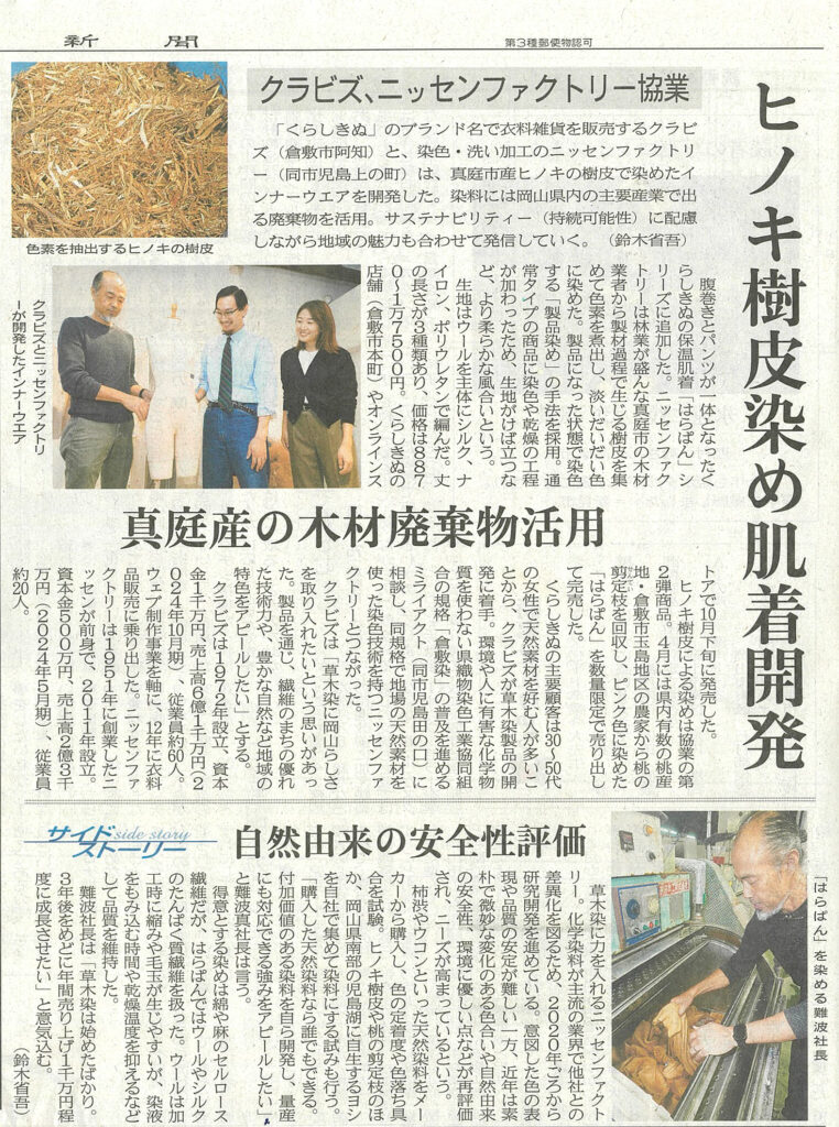 2024年11月15日 / 最終更新日時 : 2024年11月15日 kurashikizome お知らせ 【メディア情報】山陽新聞に倉敷染×くらしきぬのプロジェクトが掲載されました 2024年11月15日の山陽新聞で、倉敷染のニッセンファクトリー×くらしきぬのプロジェクトが掲載されました。