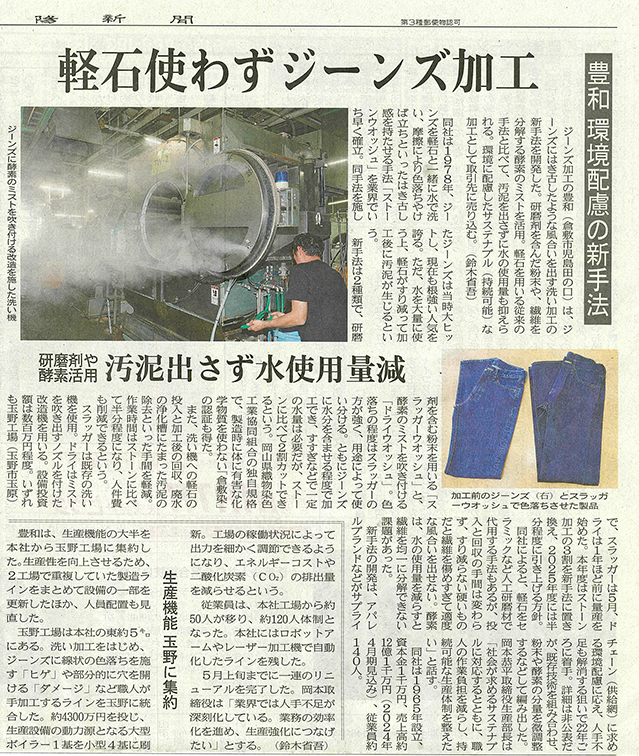 2024年6月11日の山陽新聞地方経済面に豊和の石を使わないストーンウォッシュ「スラッガーウォッシュ」の記事が掲載されました。