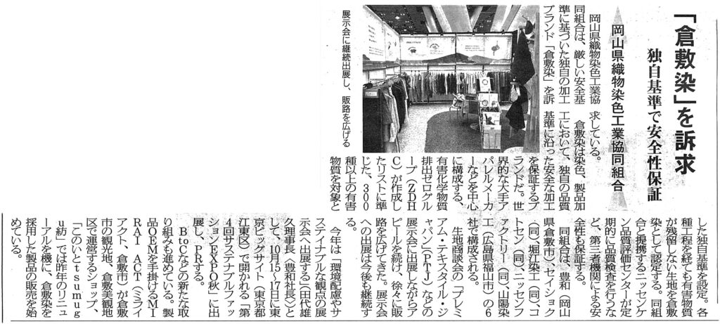 2024年7月3日 / 最終更新日時 : 2024年7月3日 kurashikizome お知らせ 【メディア情報】繊維ニュースに倉敷染の記事が掲載されました 2024年6月27日の繊維ニュースに倉敷染®の記事が掲載されました。